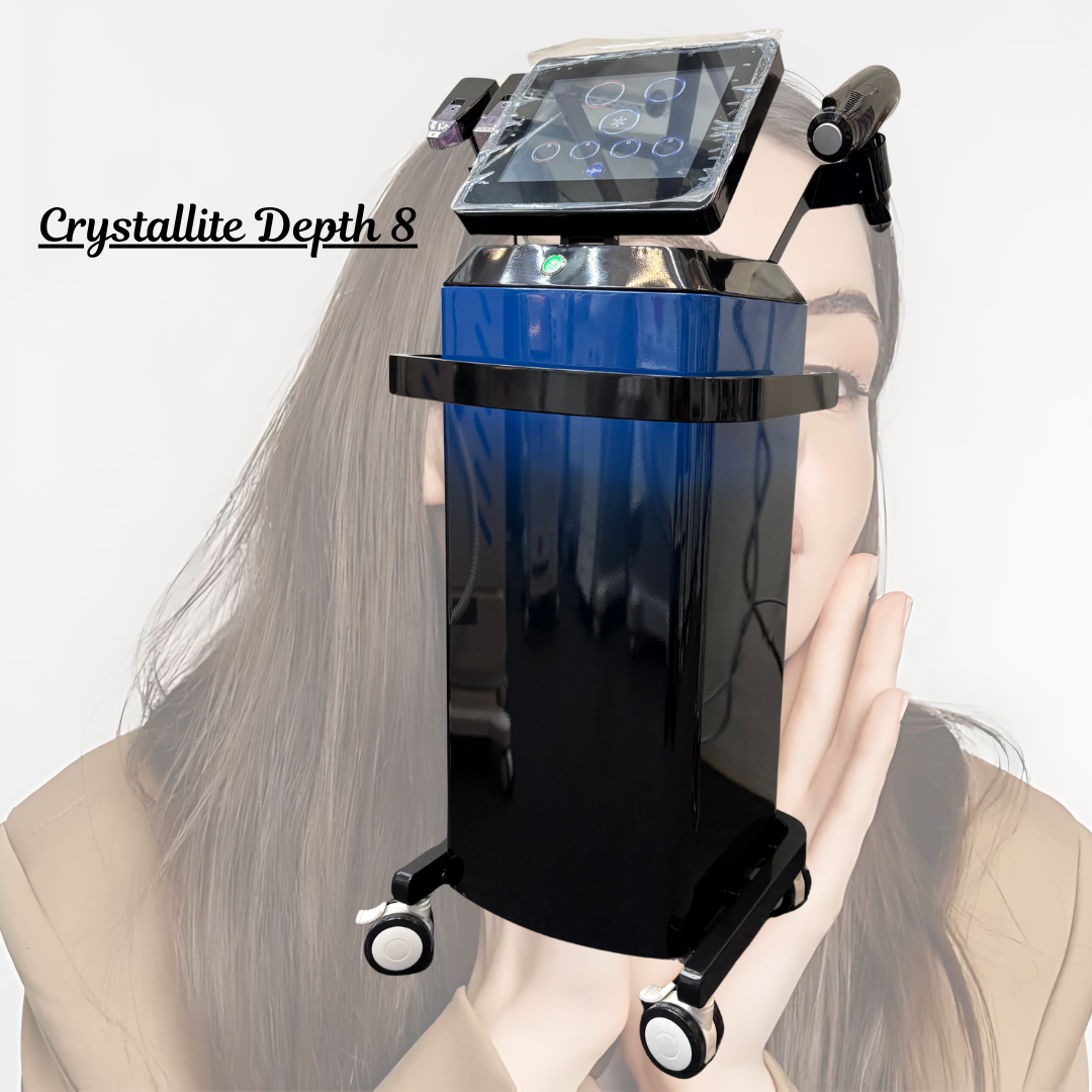 The Crystallite Depth 8 Micro needling RF Machine is a cutting-edge device designed for non-surgical skin tightening, scar reduction, and advanced rejuvenation treatments. By combining fractional micro-needling with radio frequency (RF) energy, it penetrates deep into the skin, stimulating collagen and elastin regeneration for visible, long-lasting results.